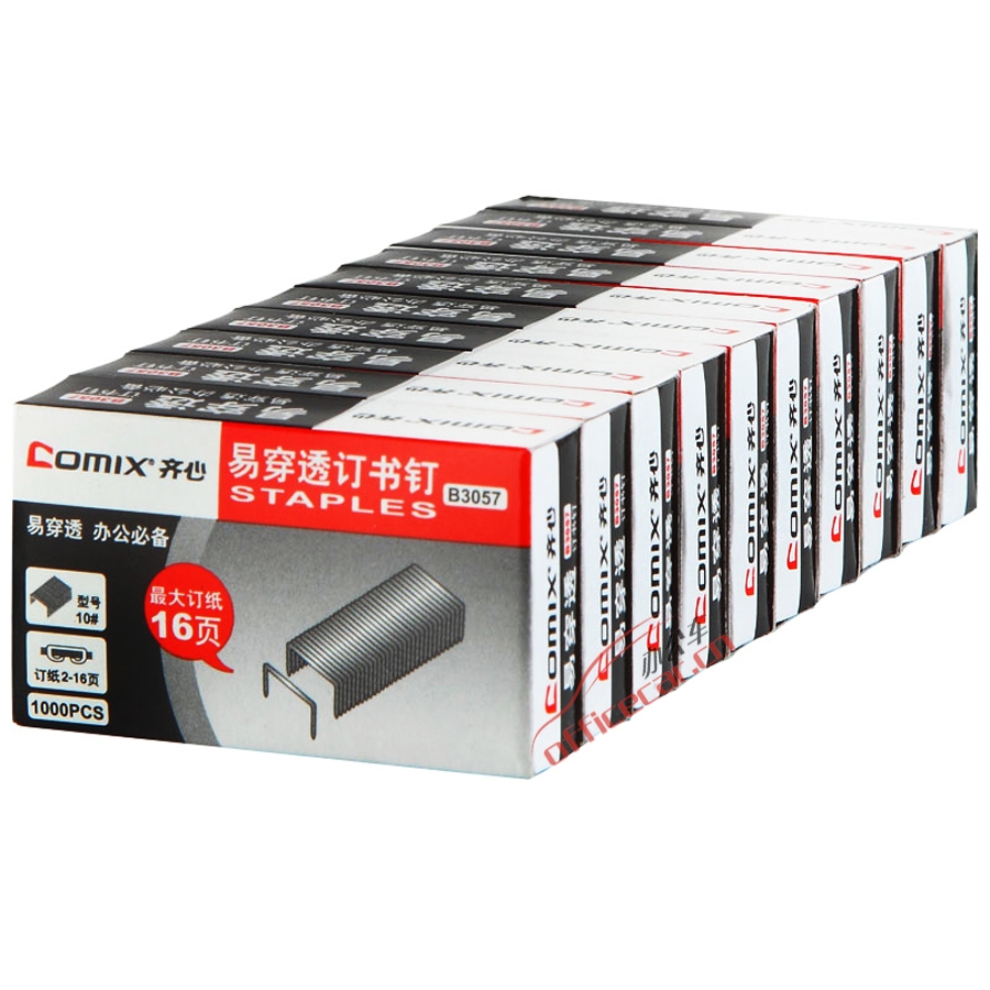 齐心 Comix B3057 订书钉 10# 16页 1000枚/盒 10盒/封