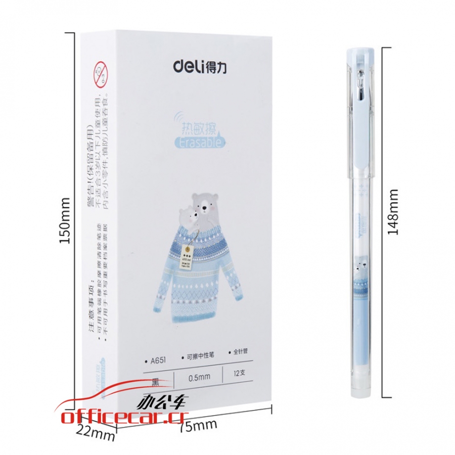 首页 > 文具/财务 > 书写用品 > 中性笔/台笔 > 得力 deli A651 文具0.5mm(可擦笔) 全针管中性笔水笔签字笔 黑色 12支/盒
