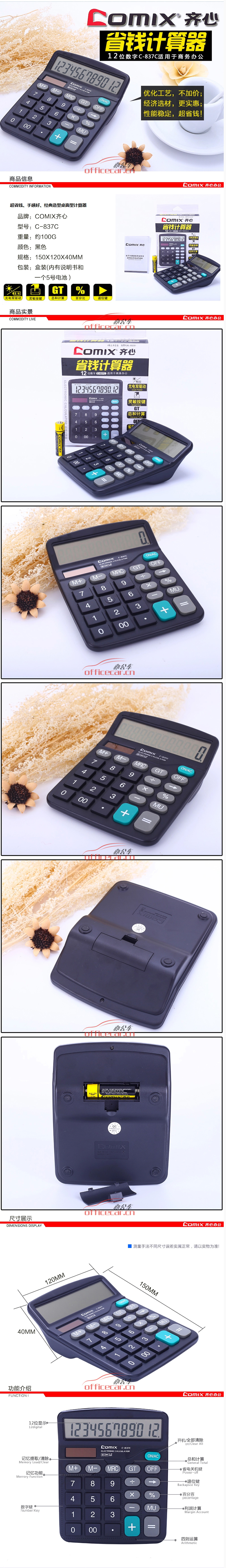 首页 > 文具/财务 > 桌面文具 > 计算器 > 齐心 Comix C-837 小台超省钱经典计算器 12位 黑色