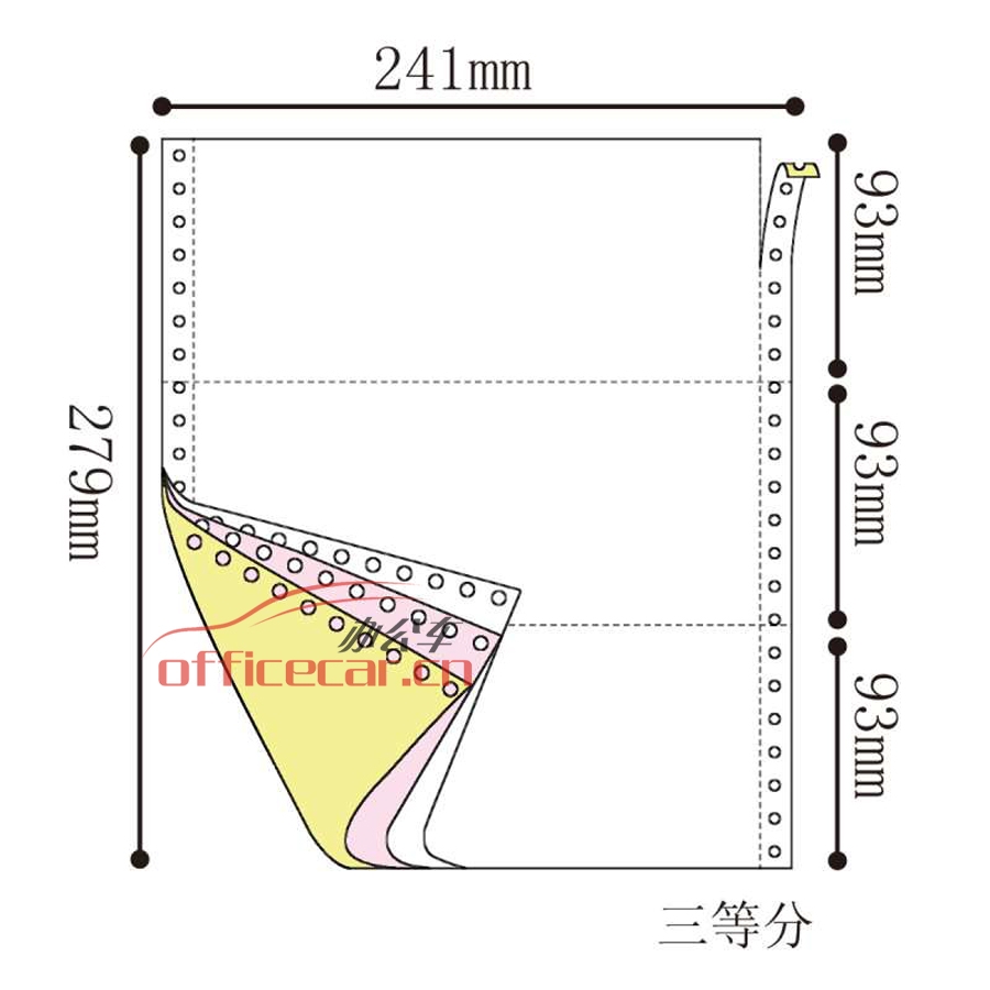 立方(LF) 3联 三等分 天惠电脑打印纸 241-3 70g 80列 带压线(彩色)
